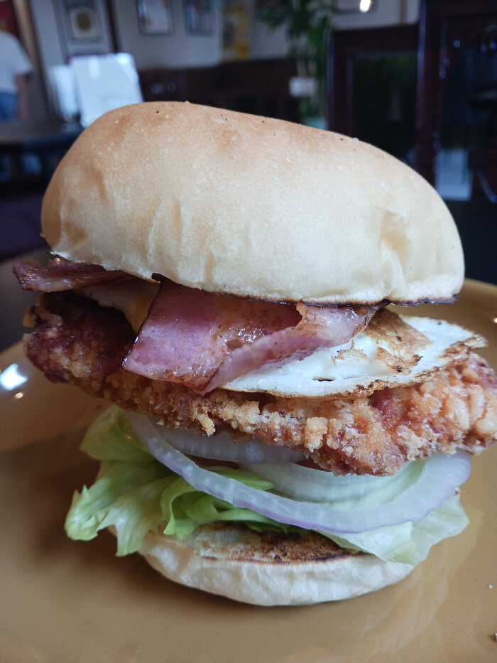 チキンベーコンチーズバーガー 2024年07月03日(水) チキンバーガー 価格 ¥1,310 数量 1 2 3 4 5 6 7 8 9 10 11 12 13 14 15 16 17 18 19 20 レタス・トマト・玉ねぎにベーコンとチーズをトッピング。 タルタルソースで味付けしております。 テイクアウトにはフライドポテトが付きます。 価格 ¥1,310 数量 1 2 3 4 5 6 7 8 9 10 11 12 13 14 15 16 17 18 19 20