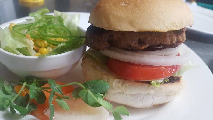 ★プレーンバーガー 2020年04月11日(土) ハンバーガー こちらもオススメ ・自家製ピクルス ¥480 ・チキンナゲット ¥640 ・ドリンクセット ¥330 価格 ¥1,120 数量 1 2 3 4 5 6 7 8 9 10 11 12 13 14 15 16 17 18 19 20 レタス・トマト・オニオンを使用。 ケチャップベースのベーシックなハンバーガーです。 表示 金額はすべて税抜き金額となっております。 すべてのハンバーガーにはポテトがつきます。 価格 ¥1,120 数量 1 2 3 4 5 6 7 8 9 10 11 12 13 14 15 16 17 18 19 20